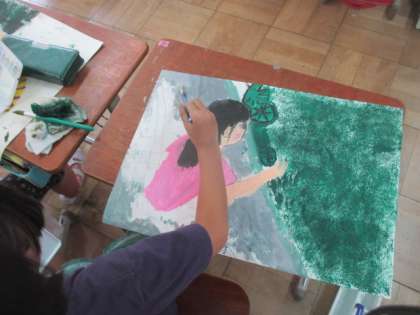 図工の学習の際に,計量図画というものの温度や長さを測っている姿を絵にする学習をしています。顔が隠れていたり,手を描くことが難しかったりと子どもたちは大変そうでしたが,良い作品を描くことができました。