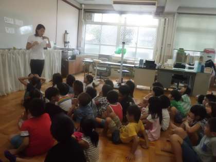 身体計測の前に養護教諭から,目の大切さについて話していただきました。