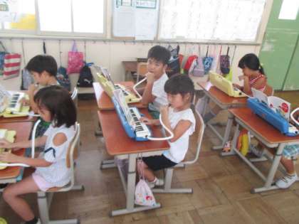 音楽の授業では,鍵盤ハーモニカの学習を初めています。