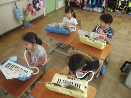 音楽の学習は,鍵盤ハーモニカを使って進めています!