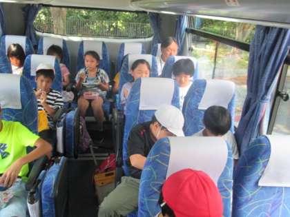 本来は運動公園でお弁当を広げたいところでしたが,あいにくの天気ということで,バスの中で“いただきます!”