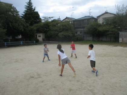運動場で放課後元気に遊んでいます。