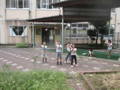 できたロケットを外で飛ばしてみました。