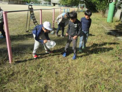トノサマバッタやコオロギにも出会って,みんな喜んでいました。