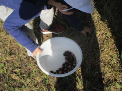 学校の運動場に,たくさんのどんぐりが落ちてました!