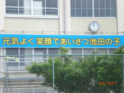 看板には,池田の地域で育つ子どもたちへの願いが込められています。
