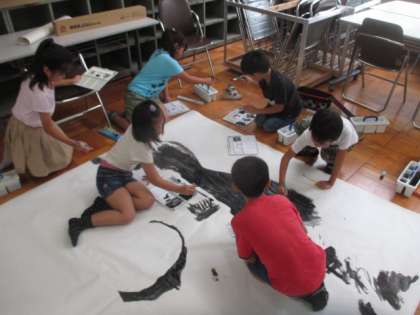 大きな絵に一生懸命色を塗りました!