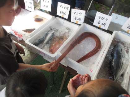 口の長いヤガラを見つけて,実際に触ってみたり,つついてみたりと,初めて見る生き物に興味津々でした。