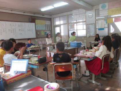 子どもたちの誕生日に,給食の時間を使って誕生日会をしています。歌を歌ったり,乾杯をしたりしてお祝いしています。
