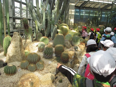 温室の中はジャングルみたいなところがあったり,いろいろなサボテンがあったり,バナナやパイナップルやカカオも見つけてとても楽しめました♪