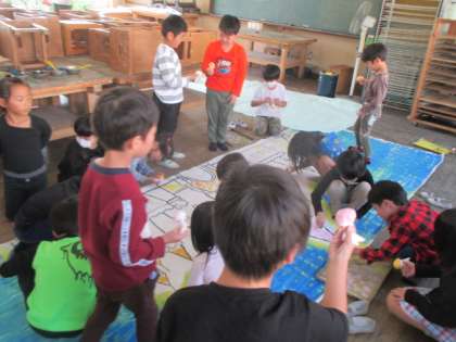 劇で使う小道具や背景を子どもたちといっしょに作りました。