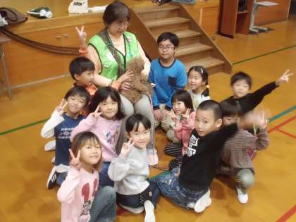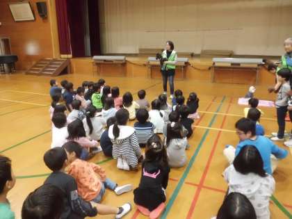 4匹の犬も池田小学校にやってきて,犬のことについて学習しました!