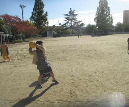 昼休みにみんな遊びでドッジボールをしました。男の子と女の子に分かれて勝負をして,とても白熱していました。