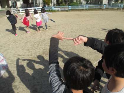 ポーズを変えてかげおくりをしていて,とても楽しそうでした。