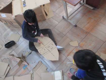 図工の「クミクミックス」の単元で,段ボールを組み合わせていろいろな物を作りました。