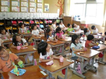 フッ化物洗口開始の前に,歯の学習と水での練習を行いました。みんな真剣にお話を聞き,うがいの練習もとても上手にできていました。