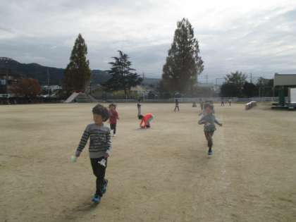 図工で作った作品を外に持ち出して,風を感じながらみんなで走っているところです。