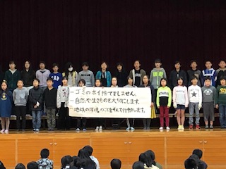 始めに5年生の「クリーン宣言」をみんなで聞いてから,町別グループで地域に清掃活動に出かけました。たくさんのごみが落ちていましたが,みんなでがんばってきれいにしました。