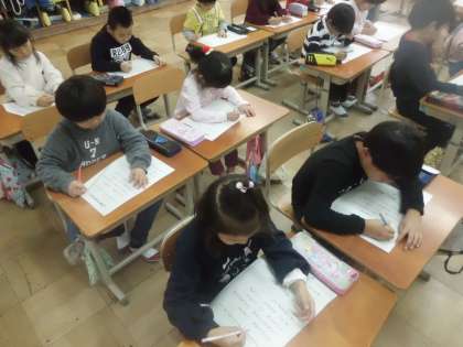 寺子屋の時間に,国語で学習した「くじらぐも」のお話に出てくる漢字を復習しました。