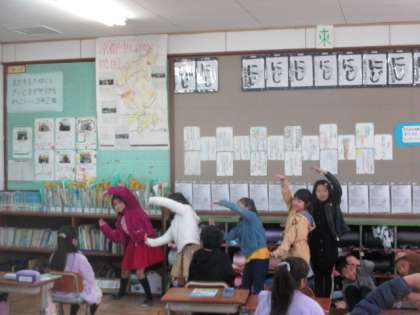 外国語の「アルファベット」の単元で,ジェスチャーゲームをしました。