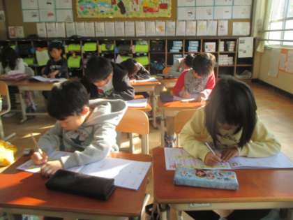 プリントやドリルで漢字やカタカナ,言葉の使い方をどんどん復習しているところです。