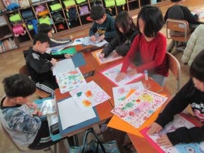 完成した版画の中から一番お気に入りの作品を選んで教室に飾りますので,参観のときにご覧ください♪