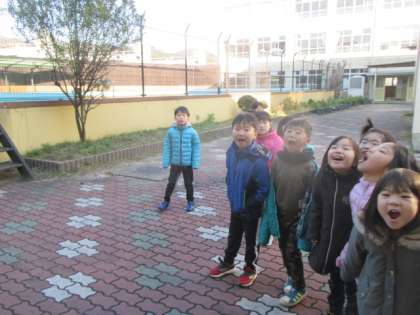 「はぁぁ!」とみんなで息を吐いて息が白くなることを見つけていました。運動場の地面に霜を見つけて「キラキラしててきれい!」と話していましたよ♪
