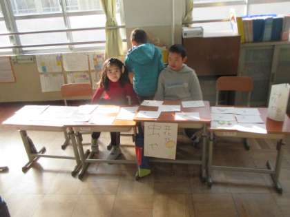 「いらっしゃいませ」「○○をください」「はい,どうぞ」「ありがとうございます」