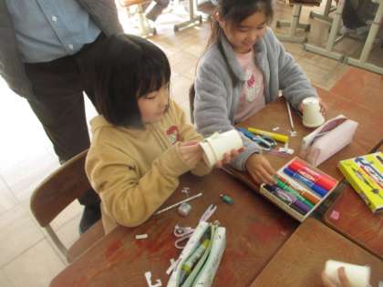 理科の時間に,じしゃくを使ったおもちゃを作りました。きつつきのおもちゃを上手に作ることができました。