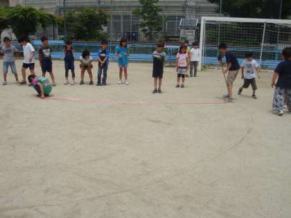 クラスのみんなは知恵を出し合い,手作り大型コンパスを作りました。