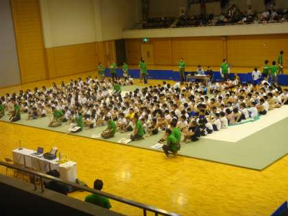 6月12日(日)は,武道センターで,今年度初めての試合がありました。午前は約450人もいるので体育館で2面のマット土俵で試合を進行し,男子はベスト16,女子はベスト8が午後に試合をすることになりました。