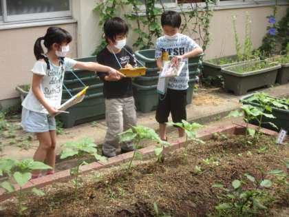 小さくできていたなすびの実を見つけて,子どもたちは楽しそうに観察していました!