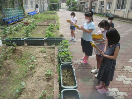 今日はAグループが総合の時間に,畑の観察をしました!