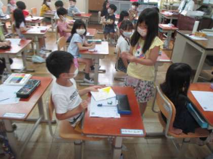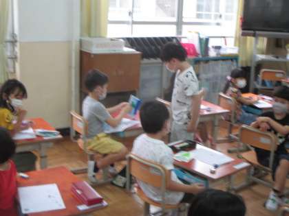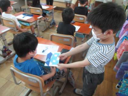 2年生が,「学校たんけん」の招待状を持って来てくれました。来週金曜日に,1・2年生で学校たんけんをします。楽しみですね。色とりどりの招待状をもらって,うれしそうでしたよ。