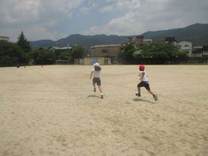 昨日の体育の時間に,先週雨の影響でできなかった「50m走」をしました!