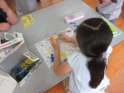 理科の「電池のはたらき」の単元で,モーターカーを作っています。説明書を読みながら「どうやってつなぐんだろう」と苦戦しながら作成していました。