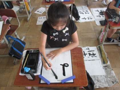 書写の時間にひらがなの筆使いについて学習しました。「繋げるように書く」ということが難しかったようで,苦戦しながら書いていました。