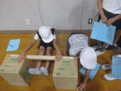 長座体前屈では,友だちとお互いの記録を測り合いました。