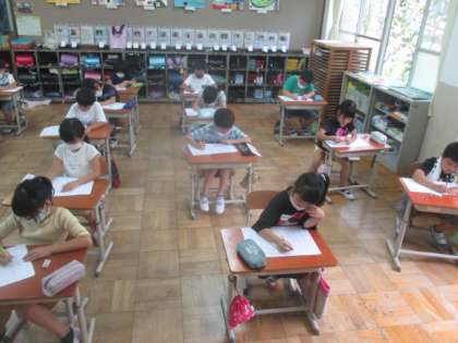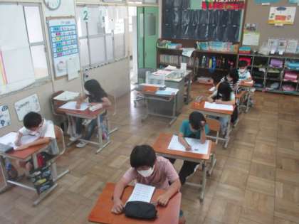 今日の6時間目に漢字の50問テストをしました。
