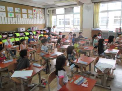 何度も数図ブロックを動かして,たしざんの意味であったり,式でかくとどうなるのかだったりを確認しながら,学習しました。