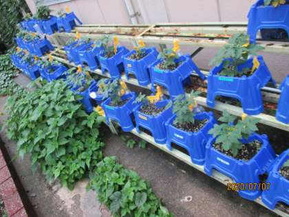 ミニトマトやサツマイモ,落花生の苗は,すくすく育っています。