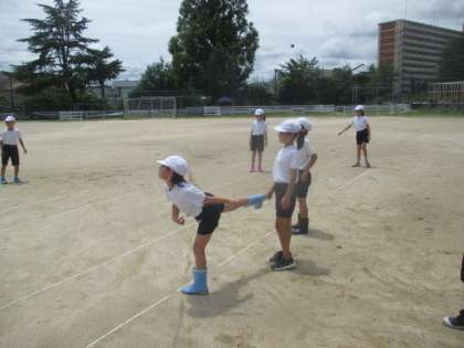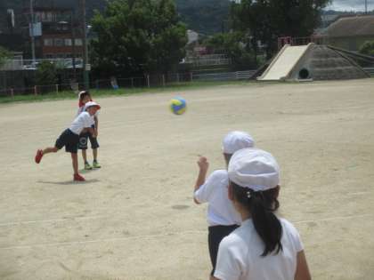 ソフトボール投げの練習の後は,ドッチボールをしました。