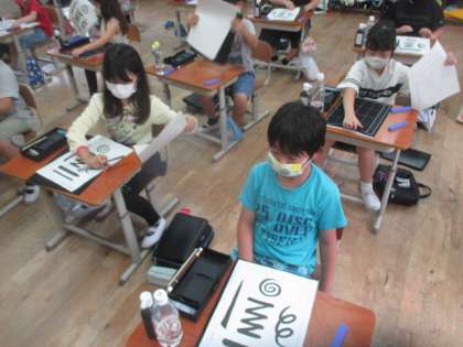 毛筆用具の名前と,置き方や使い方,良い姿勢や筆の持ち方などを学習しました!