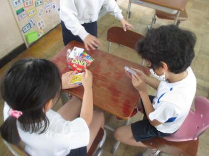雨の日が続いているので,休み時間の遊びとしてトランプやUNO,ボードゲームをしています。とくにボードゲームは大人気でした。