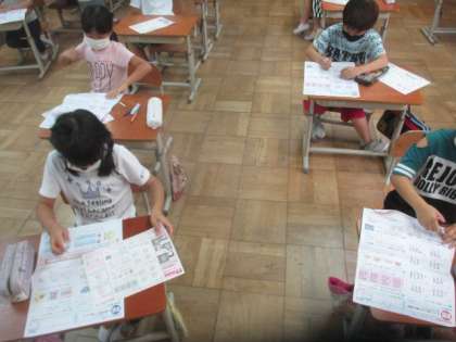 今日の算数の時間に,「たし算とひき算の筆算」のテストを返しました!