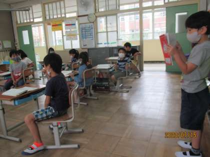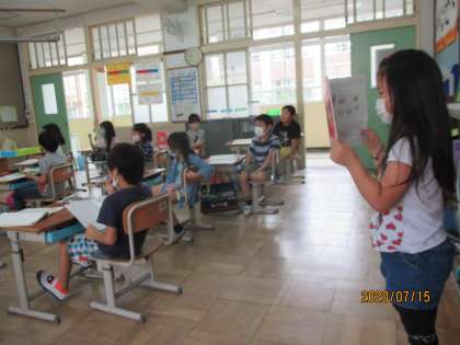 今日は,道具の絵カードをテレビにうつして,「説明書」の発表会をしました。