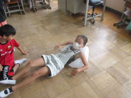 二人で押しあってみたり,座ってみたりといろいろな方法で調べていました。