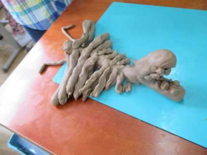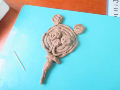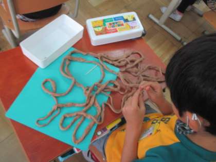 ねんどをひものように長くのばして,いろいろな作品を作りました。