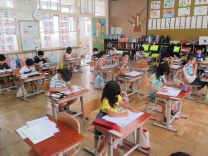 テストデビューしました!テストをするときの注意点を確認し,今までにはないピリッとした雰囲気の中,国語のテストをしました。100点たくさんとれるといいね…!