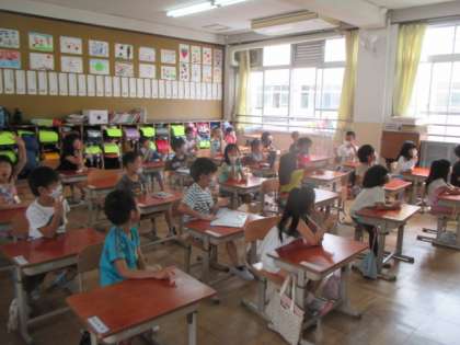 2年生以上の発表を,ビデオで見ました。先生の名前クイズ,遊具クイズ,生き物クイズと,楽しく学校紹介をしてもらったあとは,高学年がしっかりした声で,行事の紹介をしてくれました。みんな,ニコニコしながらビデオを見ていました。22日(水)には,1年生の発表を全校のみんなに見てもらいます!